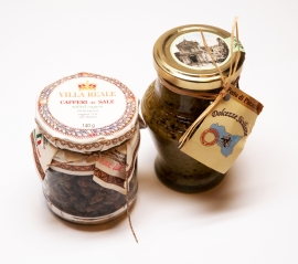Tänk dig smakerna på Capperi al Sale (torrsaltad kapris), Ciliegino Semi-Secco in Olio (soltorkade små cherrietomater i olja), Paté di Carciofi (kronärtskockskräm), Paté di Pomodori Secchi (pasta på soltorkade tomater), Pesto di Pistacchio (pesto på pitagenötter), Paté di Finocchietto (vild fänkålskräm)...allt på små bitar av hembakt bröd. En riktig sanndröm...och du är en liten bit närmare himlen!