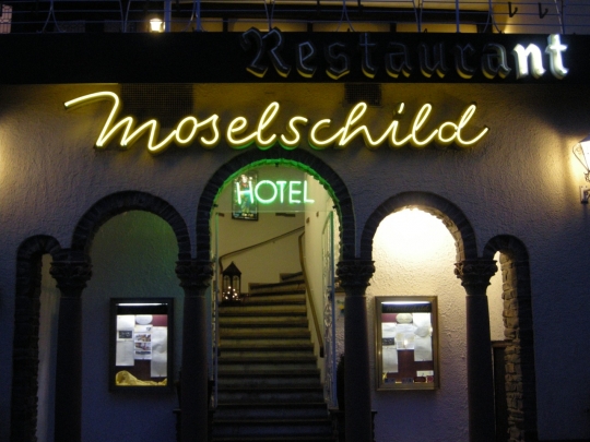 Precis utefter floden Mosel, en och en halv timma väster om Frankfurt, hittar du den lilla byn Ürzig. Och på första parkett med utsikt över den pampiga floden ligger anrika Hotel Moselschild. Det ägs och drivs idag av Katja och Oliver Probst som varit här i fyra år. De tog över efter familjen Schild som huserat här i flera generationer och byggt upp ett solitt rykte av god mat, familjär stämning och en spännande vinkällare fylld av riesling. Ett intresse som även Katja har och tar på stort allvar.