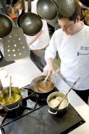 Oliver är kockutbildad och har satt en hög, kreativ standard på köket men med det lokala i fokus. All frukt kommer från Erden och även grönsaker, fisk och kött är närodlat. Den stora turistsäsongen är mellan maj till oktober och då dubblar de personalen för att klara av trycket. Terrassen med utsikt över floden förvandlas då till en av deras stora tillgångar, berättar Katja. Det blir ett extra ”vår- och sommarrum” och är ett underbart ställe för middag och ett glas riesling!