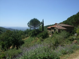 Olivlundar och ett magisk terasslandskap omger Il Pino och härifrån har du har en vidunderlig utsikt ut över dalen. Vid klart sommarväder berättar Geoff att det är över 70 kilometers utsikt söderut över Toscanas hänförande landskap.