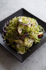 En fräsch anrättning på brysselkål som passar fint till kyckling, fisk och annat ljust kött. Den lilla asiatiska touchen ger ett skönt intryck på tallriken.