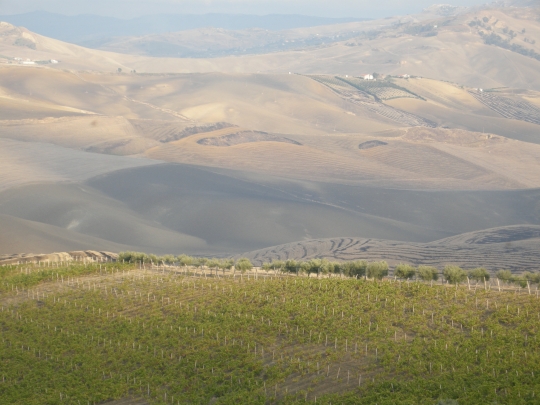 Att besöka vingården Feudo Montoni är ett litet besök i paradiset. Vingården ligger nära de centrala delarna på Sicilien i provinsen Cammarata. Mitt på egendomen ligger det gamla farmhuset som de på Sicilien kallar ”baglio”. Gården är charmig och här är allting äkta och genuint.
