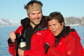 Vi bodde ombord på PolarQuest båt Origo som är ett av de mest lämpade fartygen att vara på i dessa trakter. Hon är liten, charmig och utrustad med gummibåtar så det finns knappt ingen plats man inte kan ta sig till. Kocken serverar vällagad husmanskost och det var här jag skulle få njuta min Penfolds Grange 2000. Vi väntade in den ljusa natten och sedan var det på med mössa, vantar och renfällar. Trots att det var vindstilla och solen strålade från en klarblå himmel, var klockan 0200 och kylan hade kommit krypande.